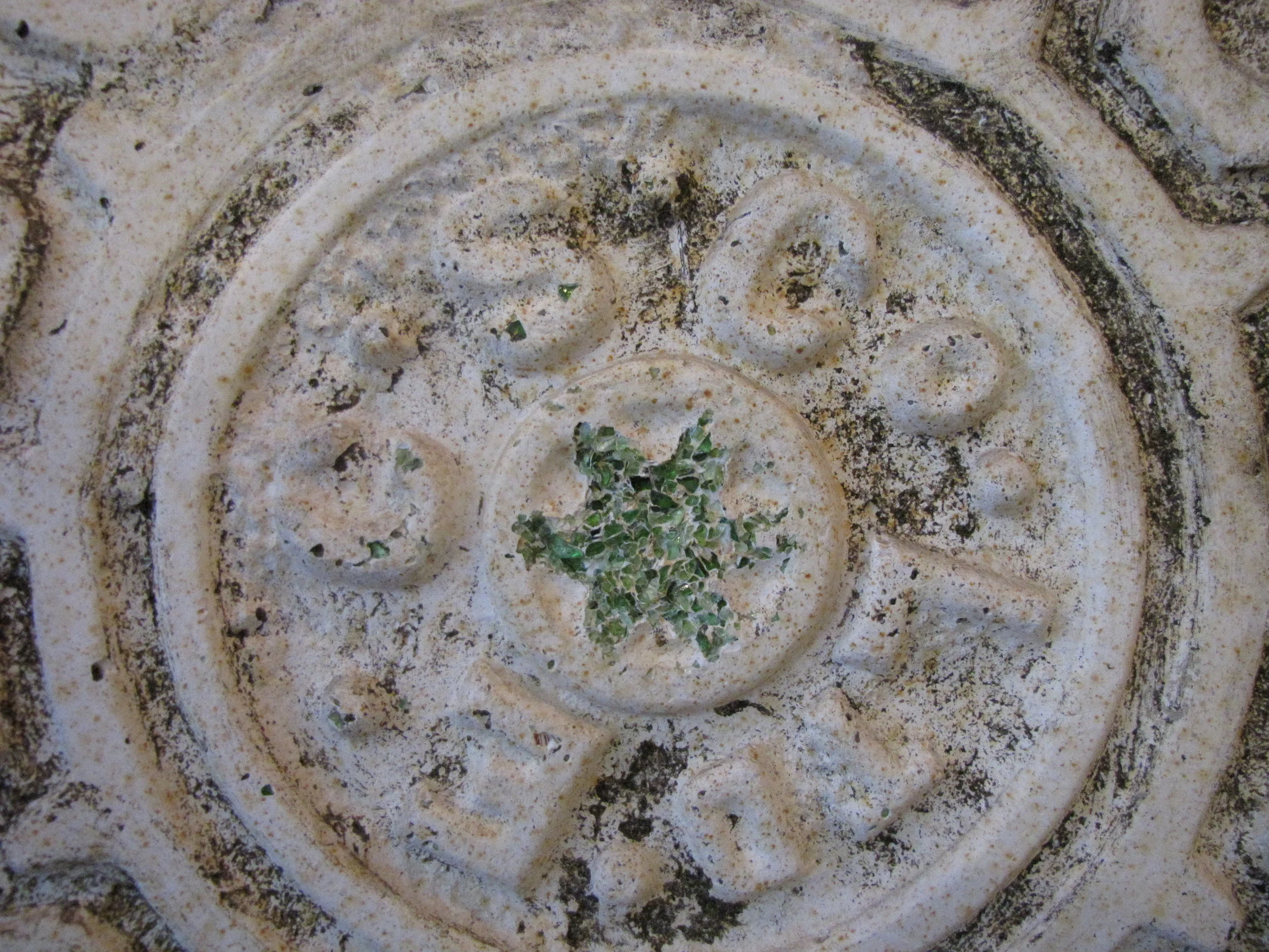 Plaster Manhole cast and found object (glass); Detail